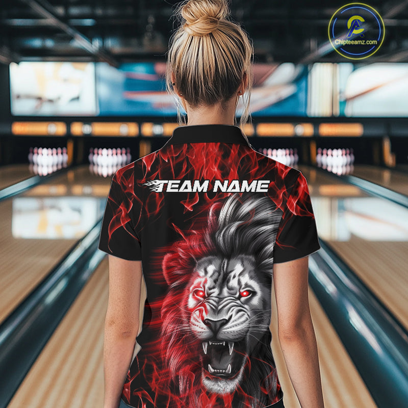 Custom Red Flame Lion Bowling Quarter-Zip Team Shirt For Women, Lion Bowling League Shirt IPHW9326