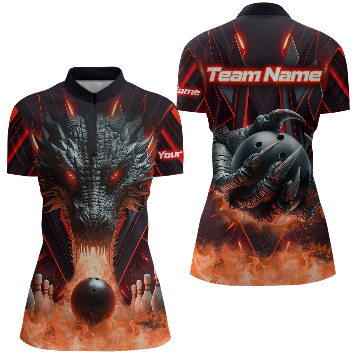 Red & Black Flame Dragon Bowling Shirt 1/4-Zip Bowling Team League for Men Women Bowling Gifts QZT668