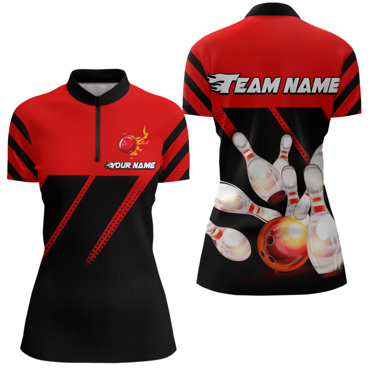 Red Bowling Shirt Custom Bowling Jersey for Men Women Bowling Polo&1/4 Zip Shirts MBL51