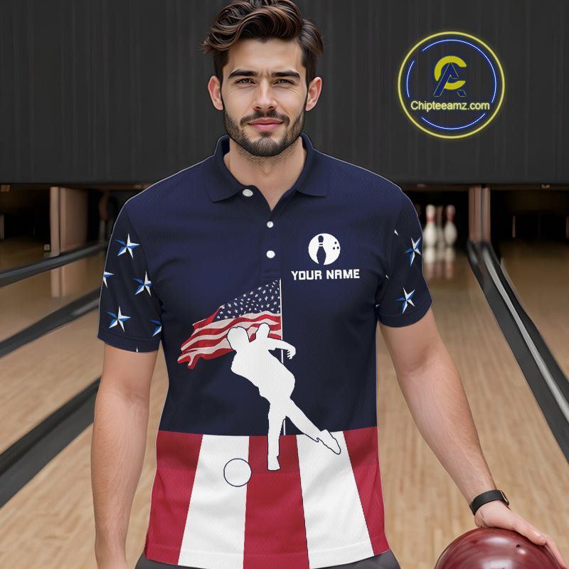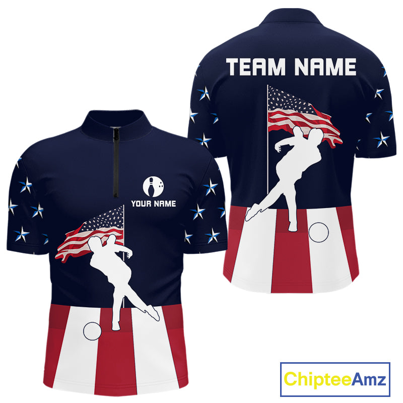 Red, White and Blue American Flag Bowling Team Shirts For Men Custom Patriotic Bowling Jerseys NQS10220