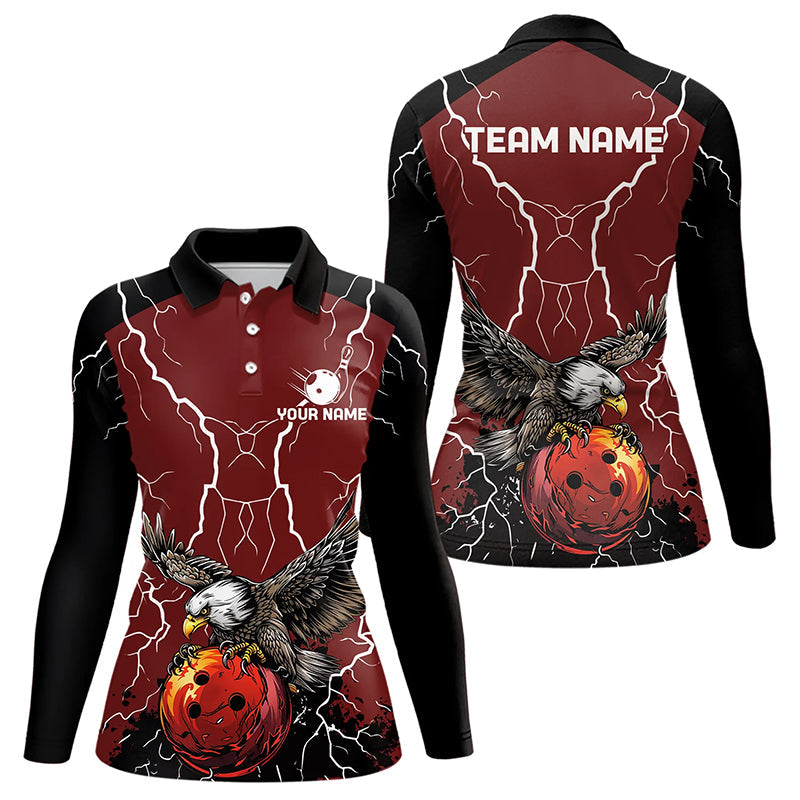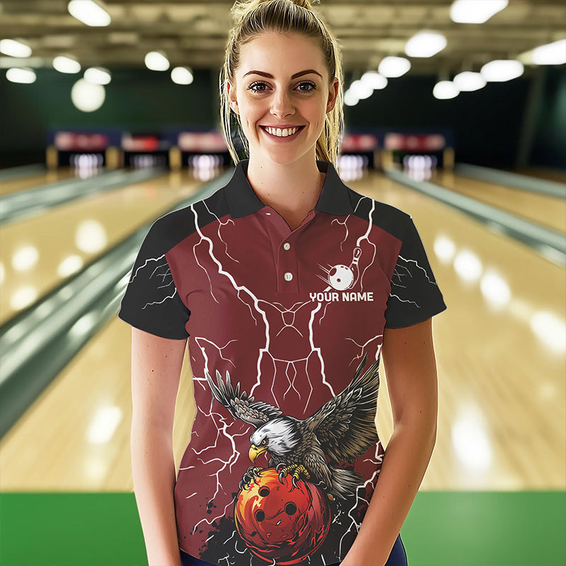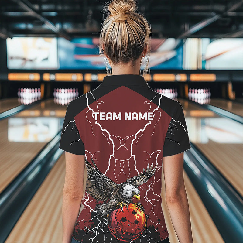 Women bowling Polo, Quarter Zip shirts Custom Eagle bowling lightning storm team league jerseys | Red NQS9781