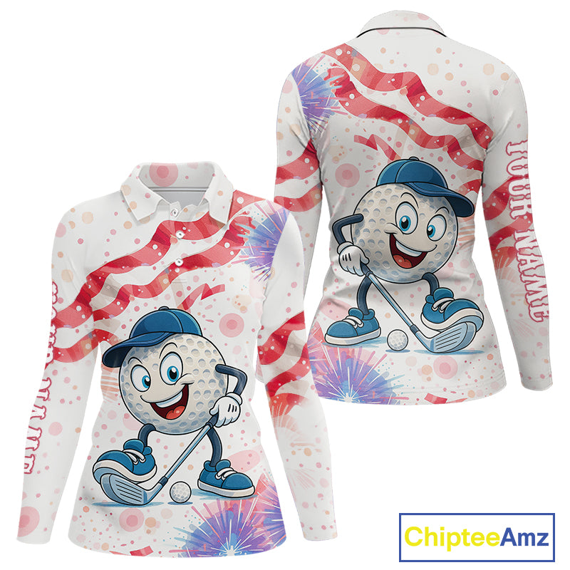 Funny Golf Ball Watercolor red, white and blue Women golf polo shirt custom patriotic fun golf shirts NQS10293
