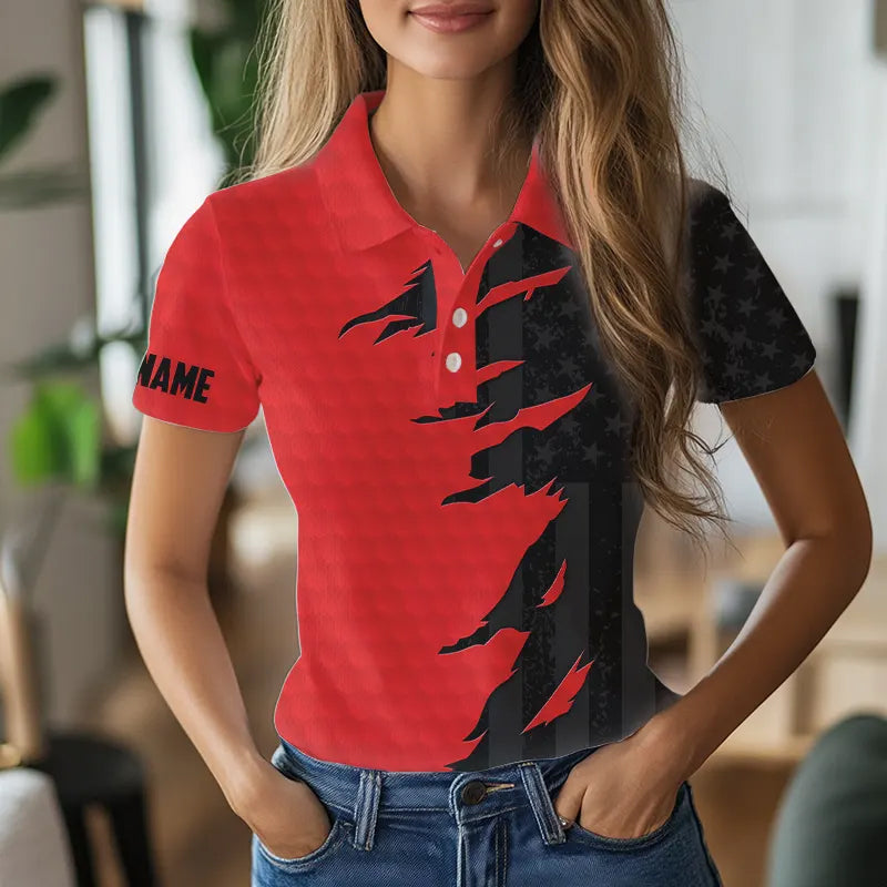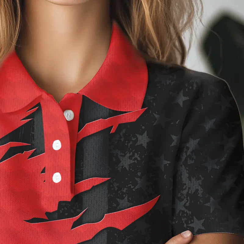 Personalized Womens golf polos shirt custom red golf shirts black American flag ladies golf apparel NQS9776