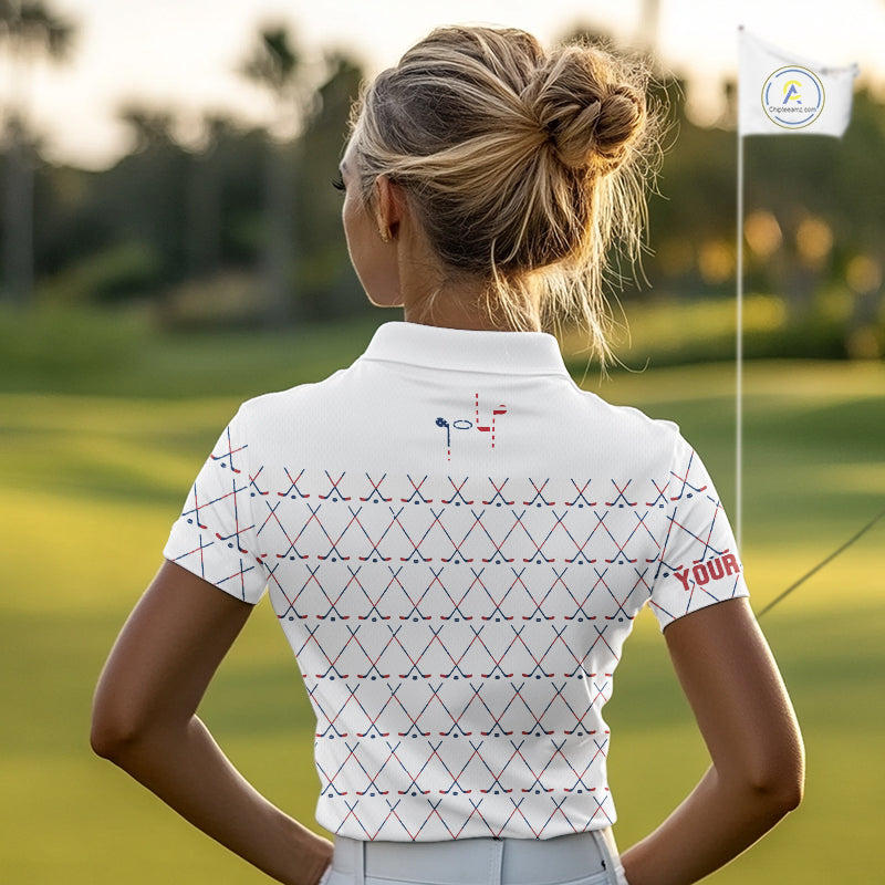 Red, White and Blue golf clubs pattern Women golf polo shirt Custom Patriotic golf outfits for ladies NQS10198