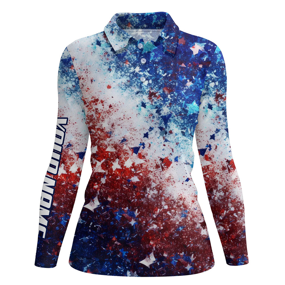 Womens golf polo shirts Red, white and blue stars pattern custom golf shirt for womens, golfing gift NQS5847