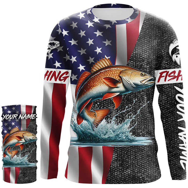 American Flag redfish Fishing Custom long sleeve Fishing Shirts for men personalized Fishing jerseys NQS4957