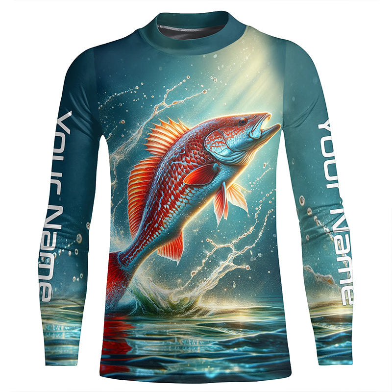 Redfish Puppy Drum Custom Long Sleeve Performance Fishing Shirts, Redfish Fishing Jerseys IPHW5582
