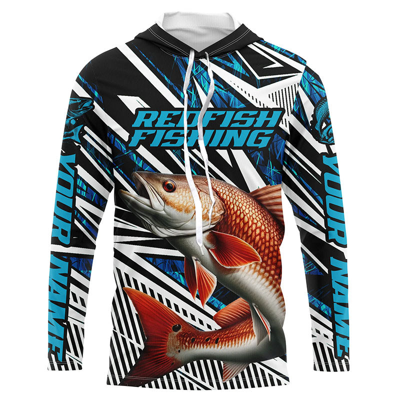 Custom Redfish Puppy Drum Long Sleeve Tournament Fishing Shirts, Redfish Fishing Jerseys | Blue Camo IPHW6123