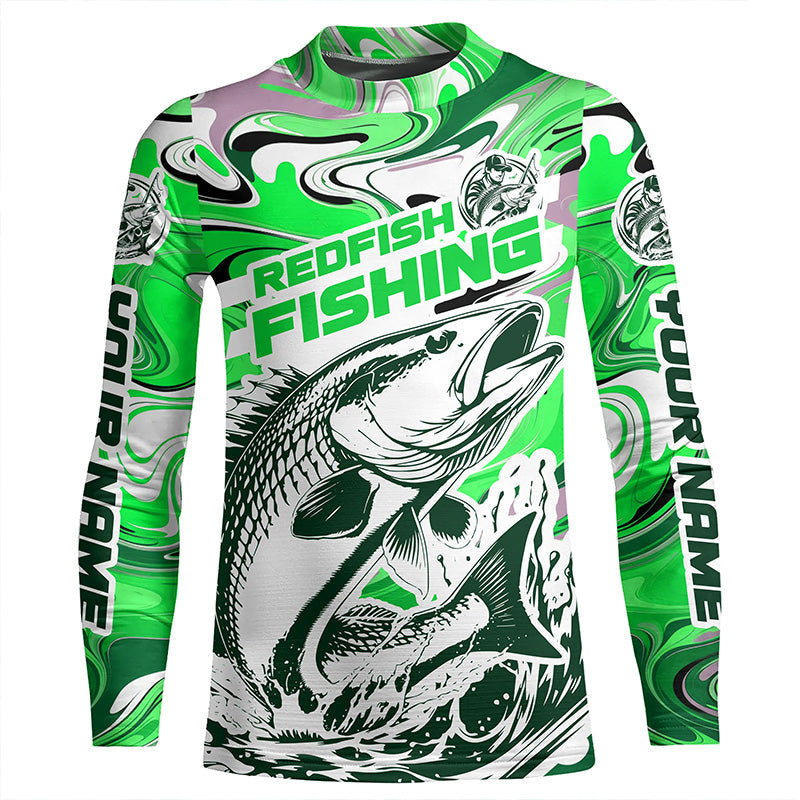 Redfish Fishing Custom Performance Long Sleeve Uv Shirts, Saltwater Camo Fishing Shirt | Green IPHW6156
