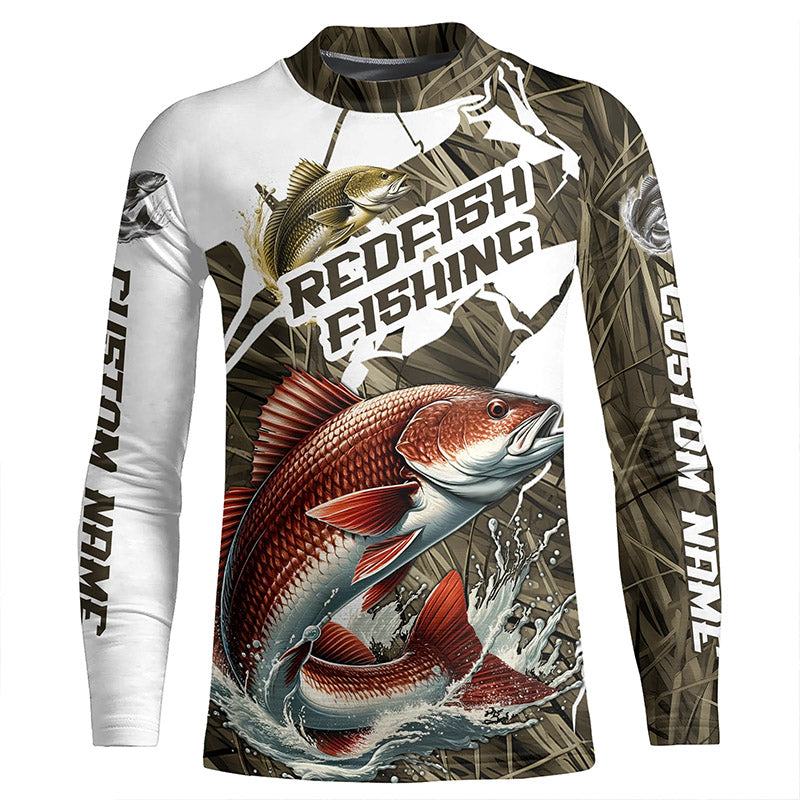 Custom Redfish Fishing Tournament Jerseys, Redfish Long Sleeve Fishing Shirts Camo IPHW6845