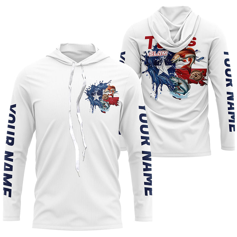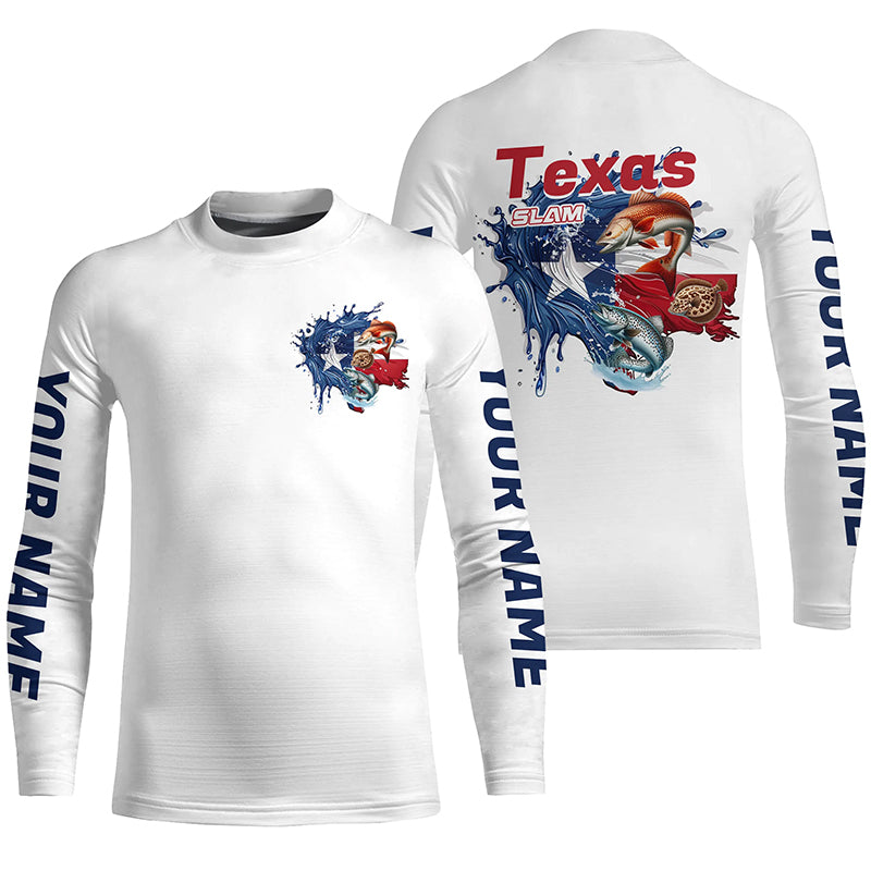 Custom Texas Slam Long Sleeve Fishing Shirts, Texas Trio Redfish, Trout, Flounder Fishing Shirts IPHW7054