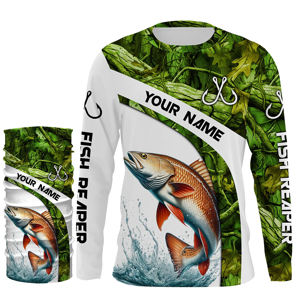 Redfish fishing Green Camo UV protection Custom long sleeve fishing shirts, Red drum tournament jersey NQS5132
