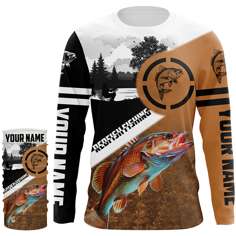 Redfish Puppy Drum Fishing customize name performance fishing shirt UV protection long sleeves NQS614