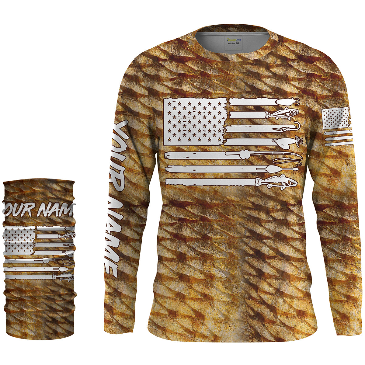 Redfish puppy drum Fishing American flag patriotic Customize Name long sleeves fishing shirts UPF 30+ NQS2220