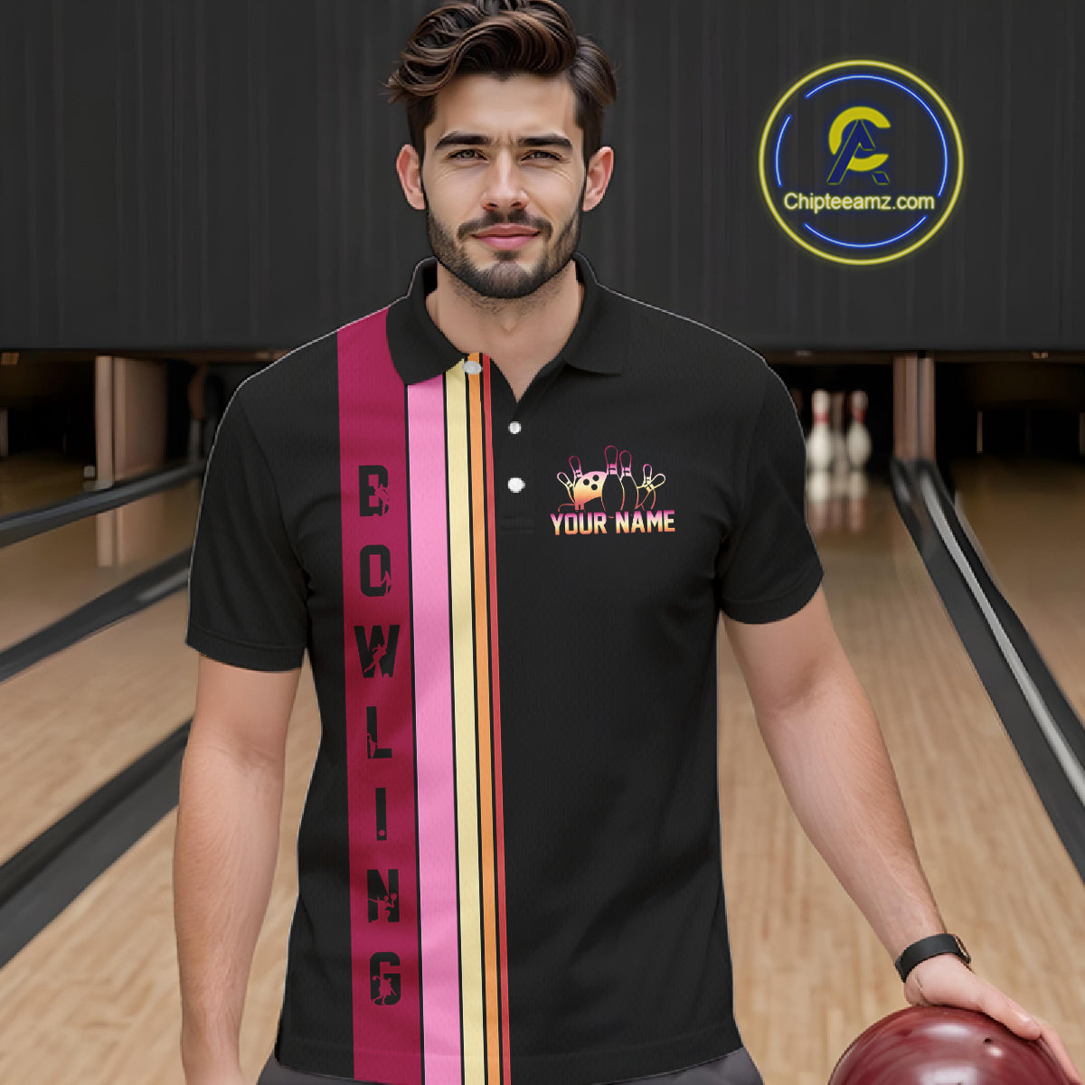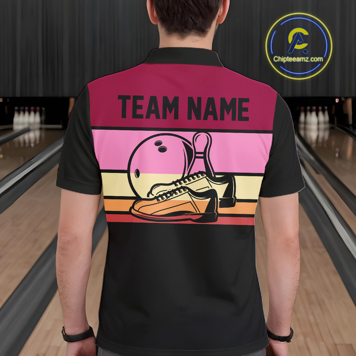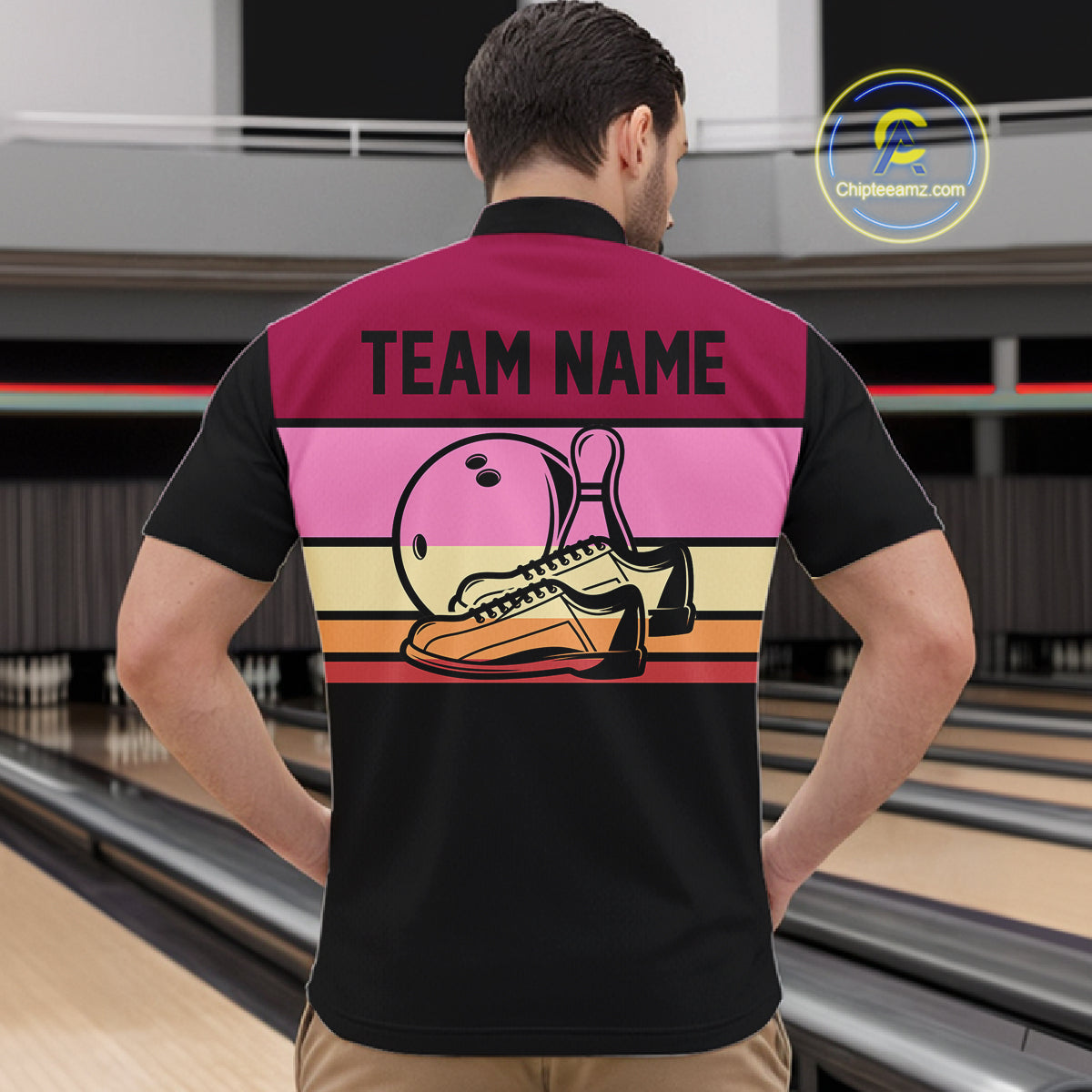Black and Pink Retro Bowling Polo, Quarter Zip Shirts for Men Custom Team Bowling League Jerseys NQS10503