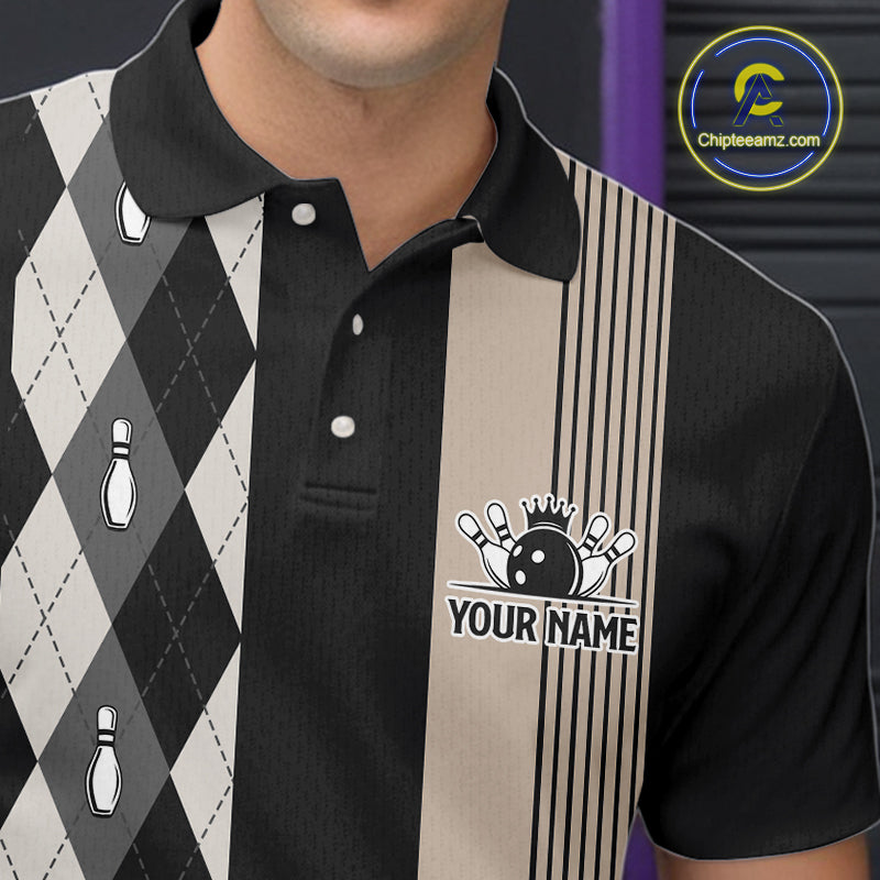 Retro Black argyle pattern Bowling shirts For Men custom bowling team jerseys Bowler Outfits NQS10276