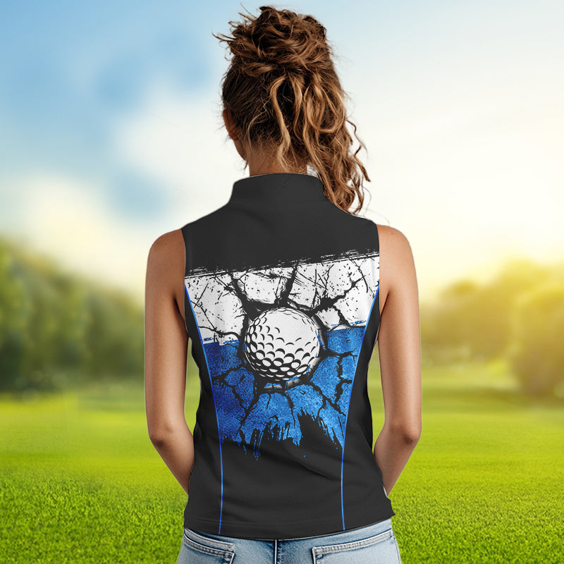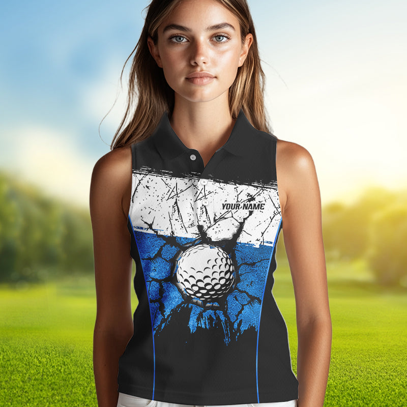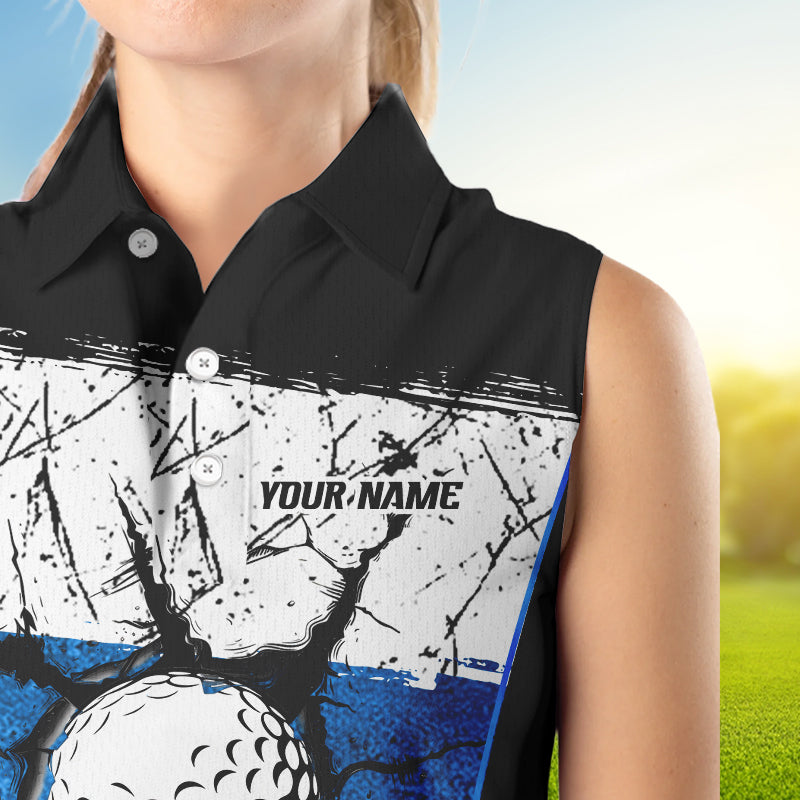 Black, White & Blue Retro broken Golf ball Women Sleeveless Polo shirt Custom Team golf outfit ladies NQS9788