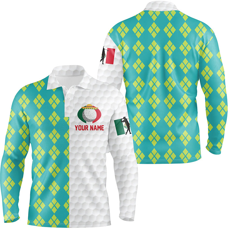 Blue Yellow Argyle Pattern Mexican Flag Mens Golf Polo Shirts Patriotic Golf Shirts For Men LDT0433
