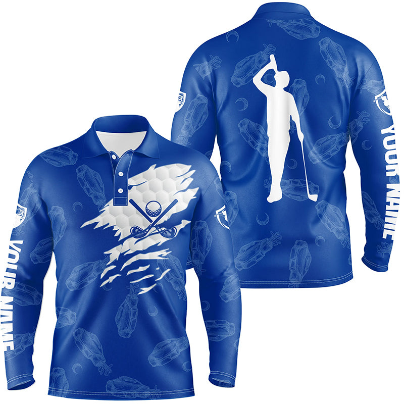 Mens golf polo shirt custom name golf clubs pattern shirt | Blue NQS3857