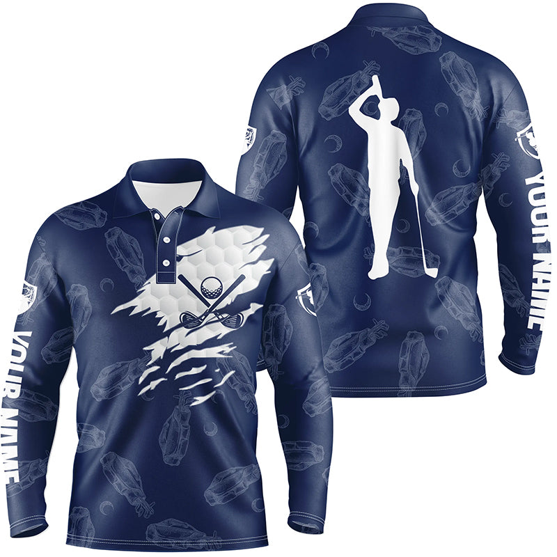 Mens golf polo shirt custom name golf clubs pattern shirt | Navy Blue NQS3858