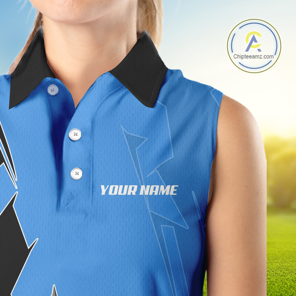 Women Sleeveless golf polo shirts custom blue and black golf tops for ladies, best golf gifts NQS10062