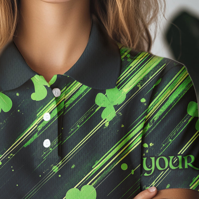 Personalized Black & Green Clover pattern Women golf polo shirt Custom St Patrick Day ladies golf wear NQS9574