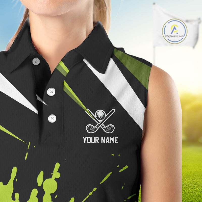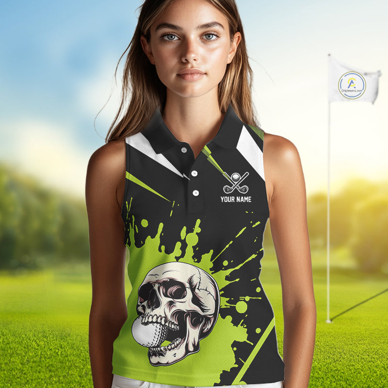 Black and Green Skull Sleeveless Golf polo shirts Custom team golf outfits ladies, cool golf gifts NQS10025