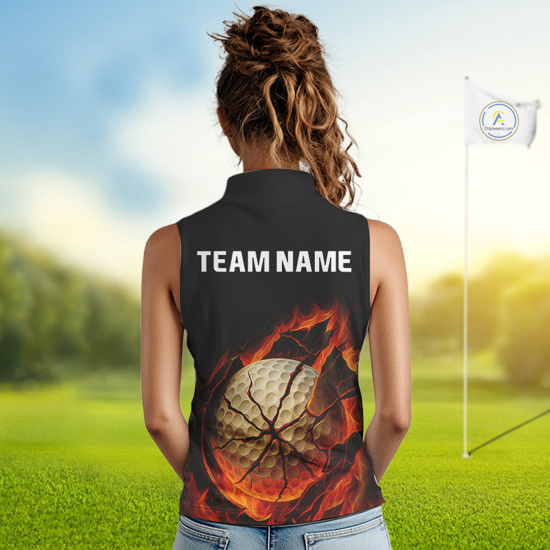 Flame Broken Golf Ball Women Sleeveless golf polo shirt, personalized cool golf outfit for ladies NQS10101
