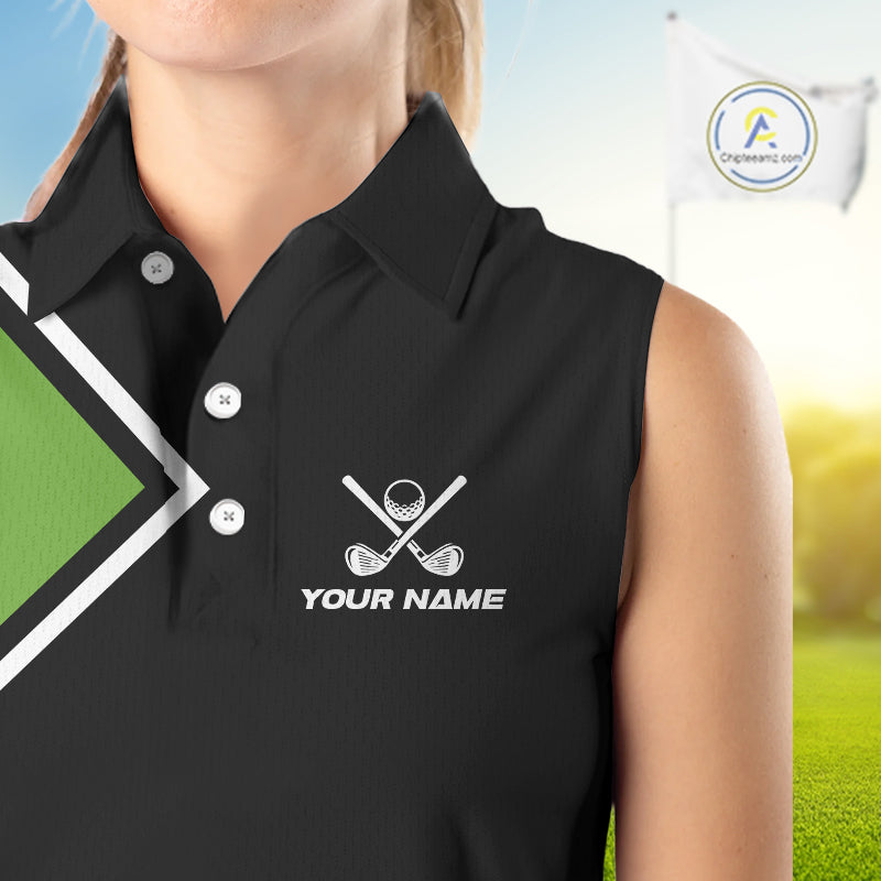Green and Black Women Sleeveless Polo Shirt Custom golf clothes for ladies, gifts for the golfer NQS10249