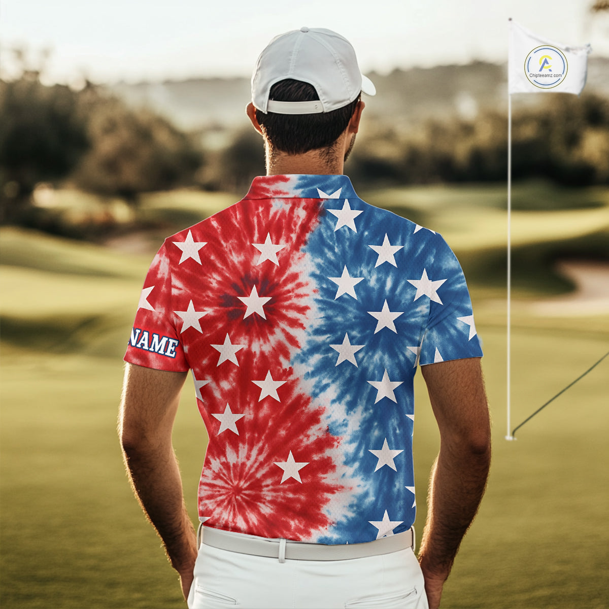 American Flag Tie dye pattern Mens golf polo shirts custom name patriotic golf attire for mens NQS9990