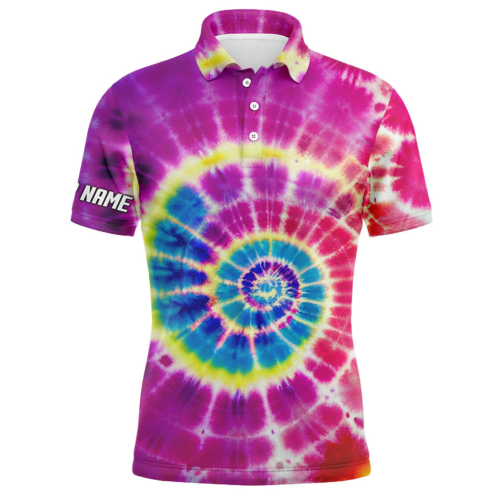 Mens golf polo shirt with colorful spiral tie dye background custom team golf shirts for mens golfers NQS5433