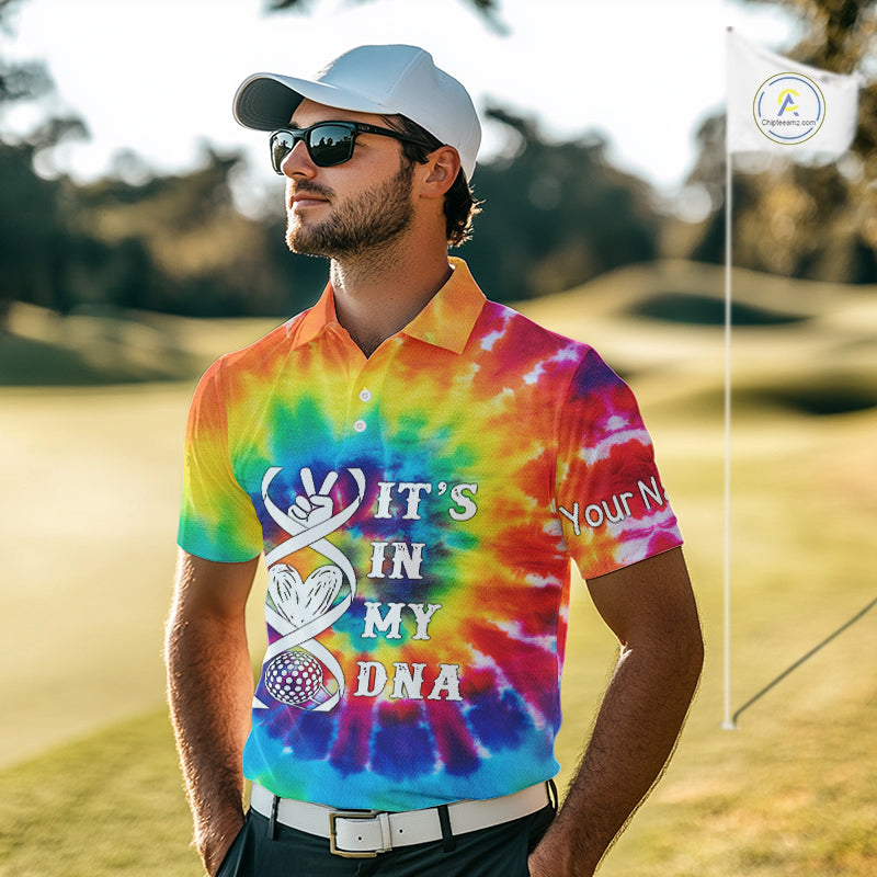 Mens golf polo shirts colorful tie dye pattern custom It's in my DNA peace love golf top for mens NQS10391