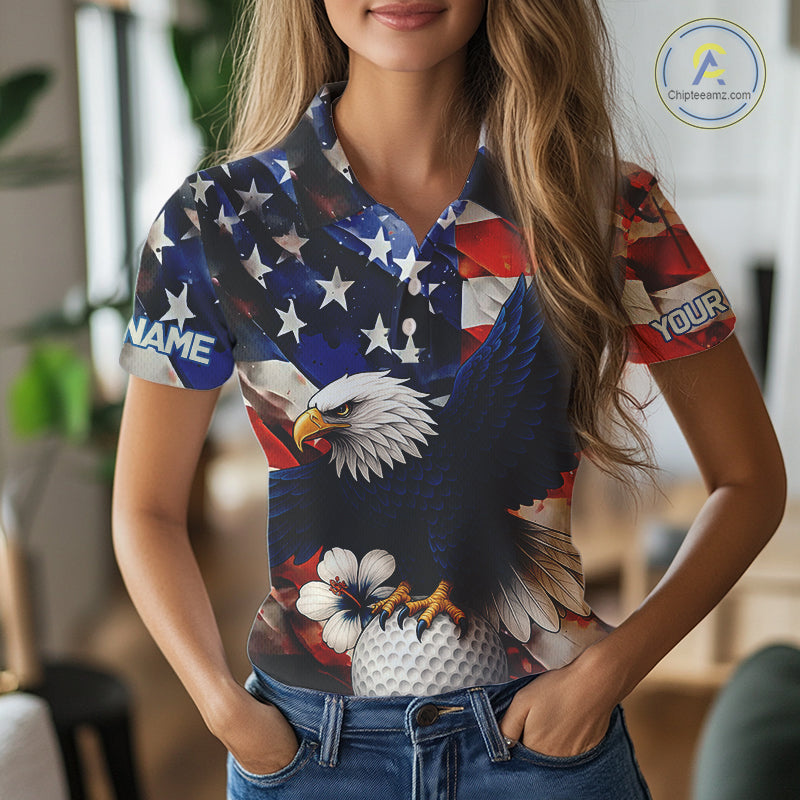 American Flag Eagle Women golf polo shirts custom patriotic Eagle golf attire for ladies NQS9976