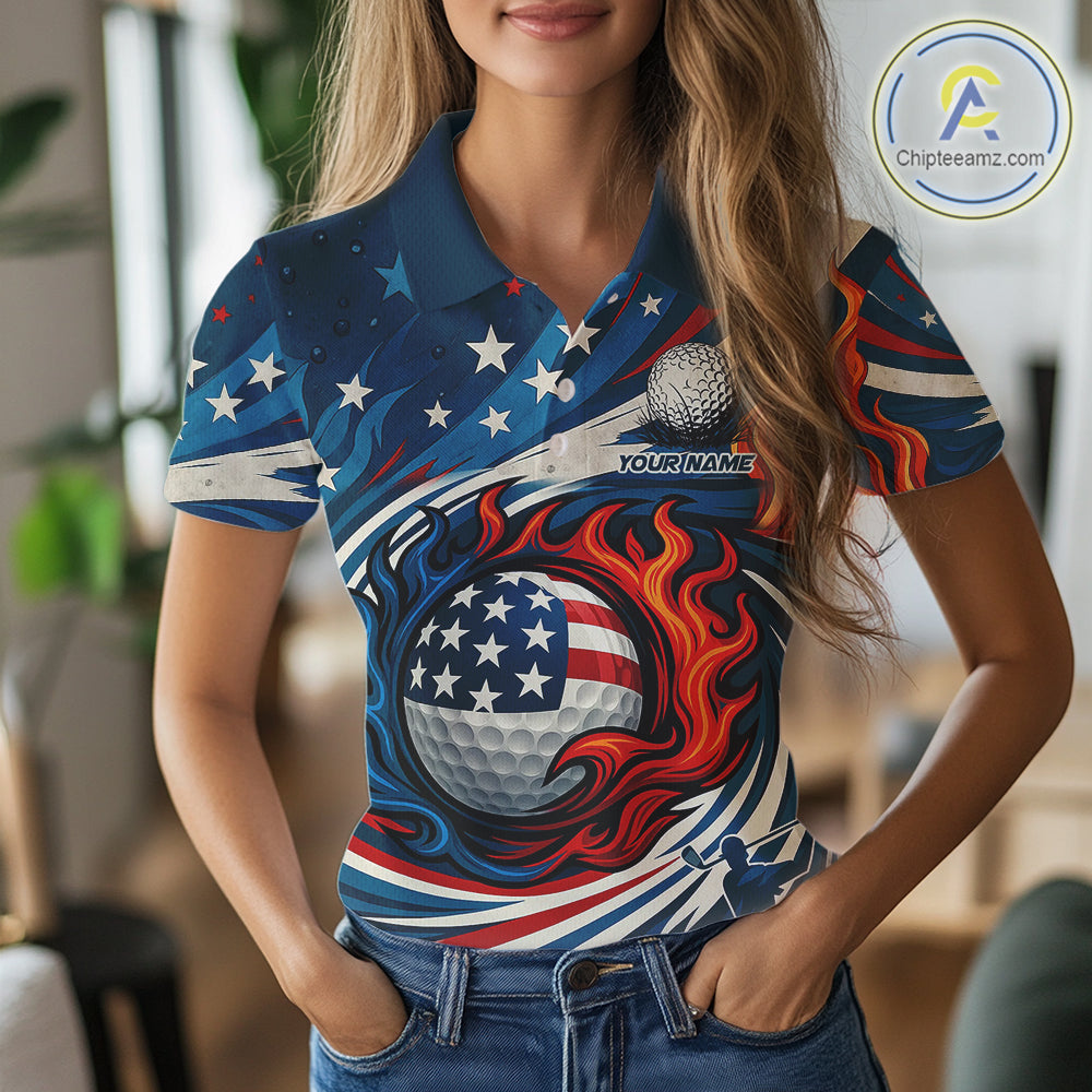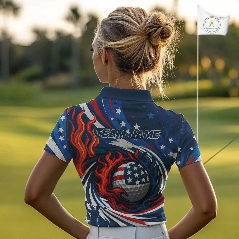 American Flag pattern Flame golf ball Women Golf polo shirts Custom patriotic Golf Outfit For Women NQS10038