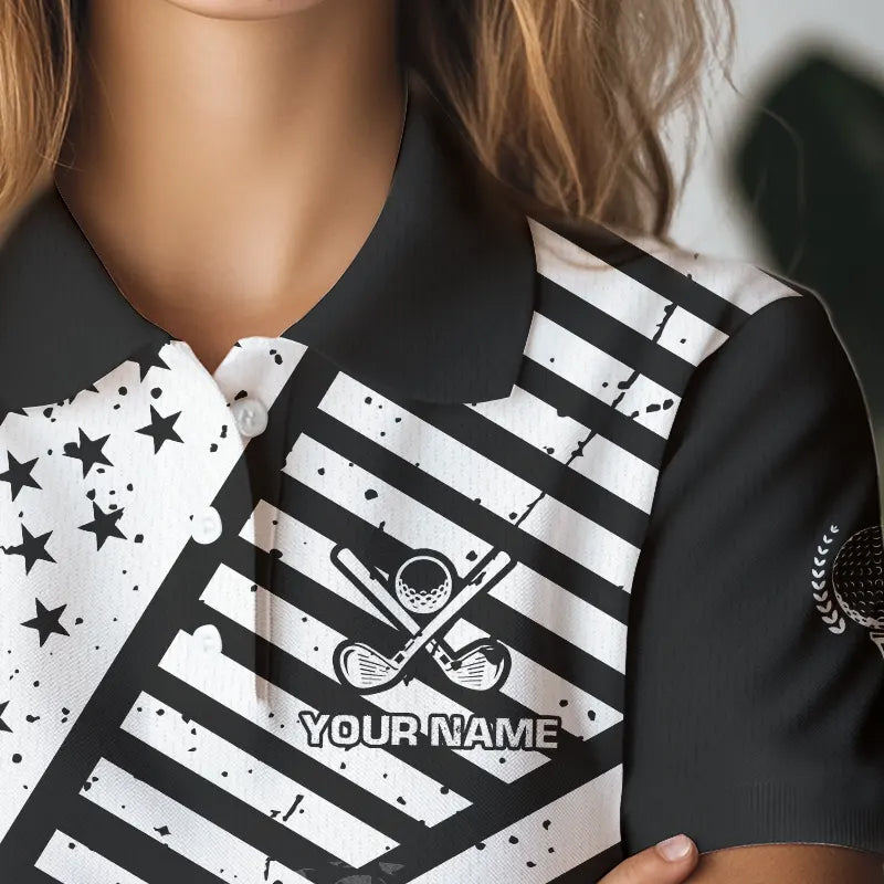 Black and White American Flag Women Golf polo shirts custom patriotic golf apparel team golf jerseys NQS9605