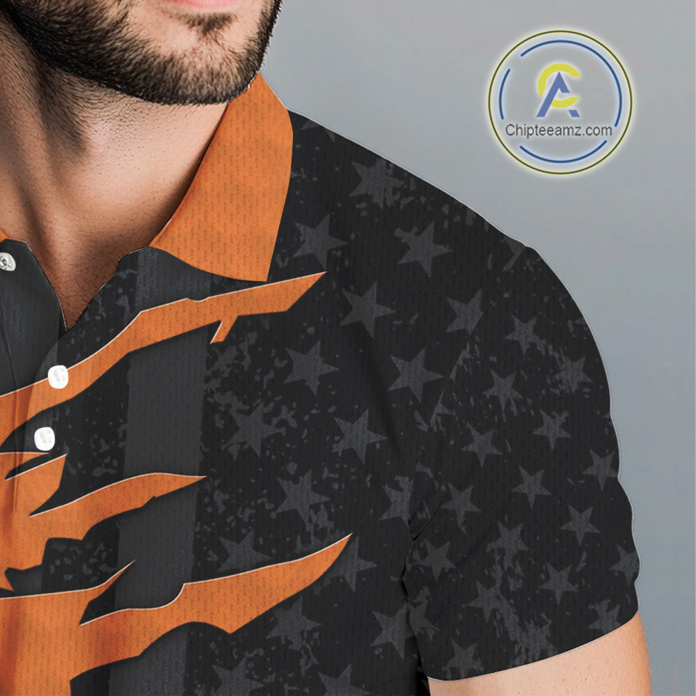 Personalized Mens golf polo shirts custom orange golf ball skin black American flag mens golf apparel NQS10070