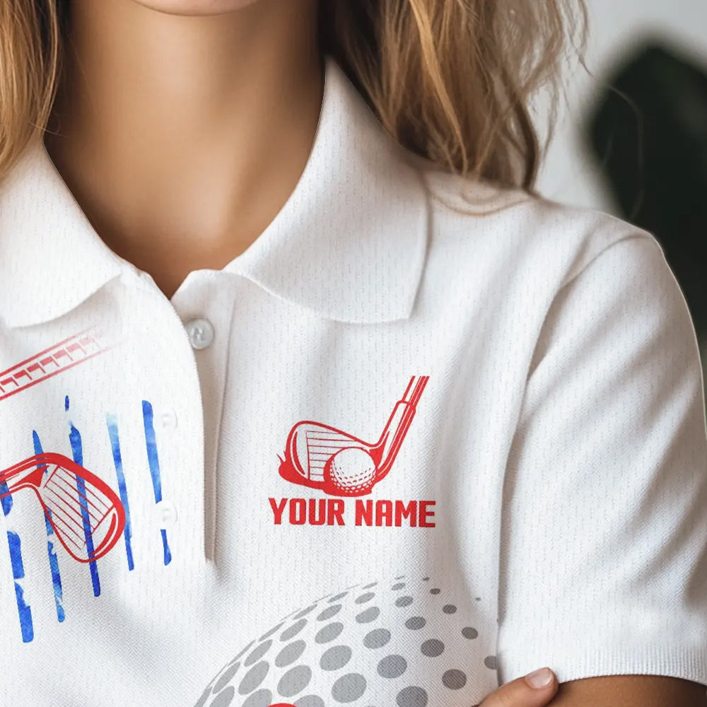 Red, White and Blue American Flag Golf Polo Shirt For Women Custom Patriotic Golf Shirts Golfer Outfit NQS9690