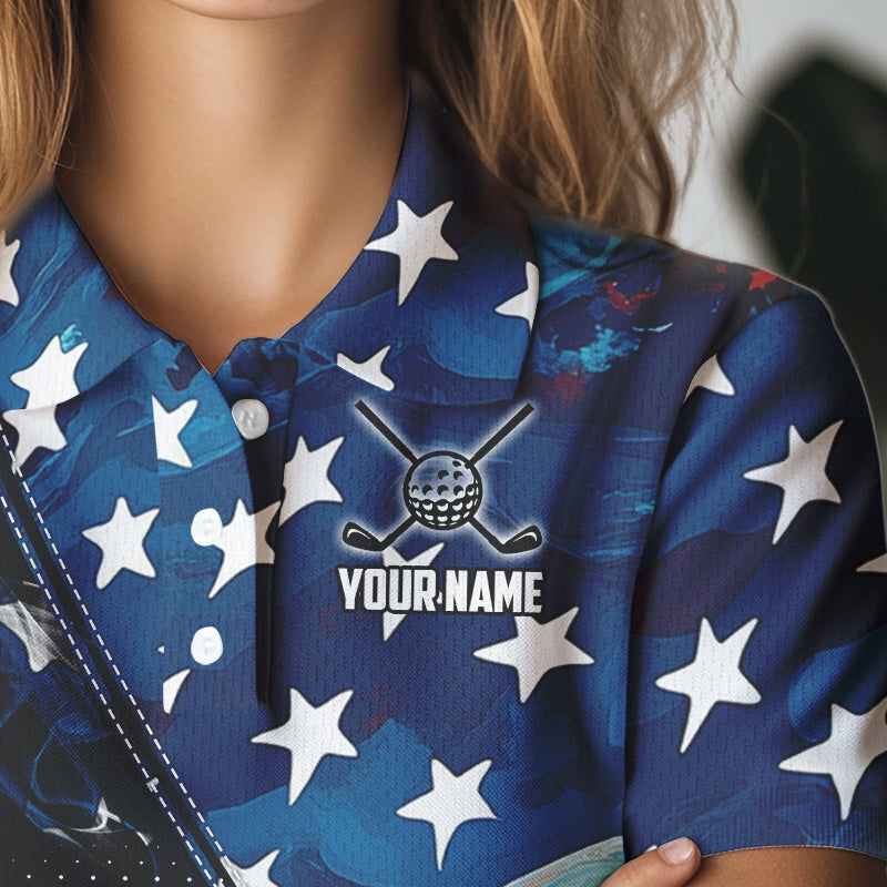 Red, White and Blue American Flag Women Golf Polo Shirts Custom Patriotic Team Golf Shirt For Golfer NQS9695