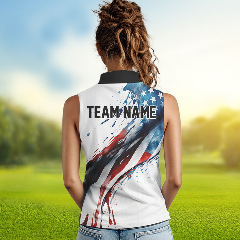 Red, White and Blue American flag Women sleeveless polo shirt Custom patriotic golf top for ladies NQS9419