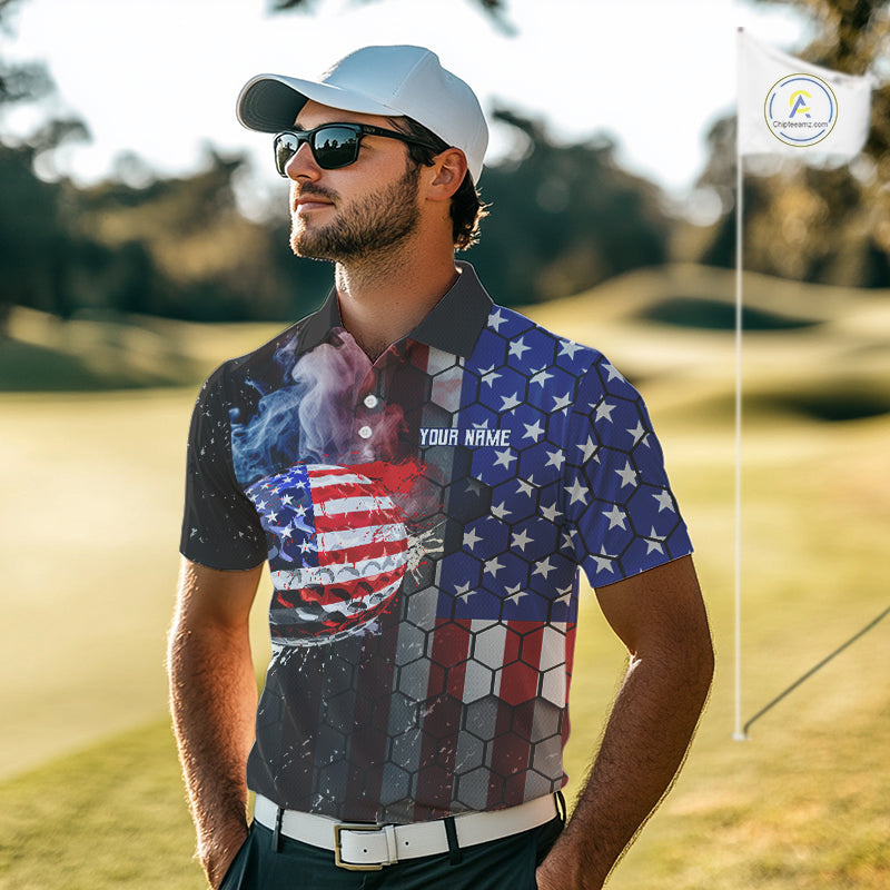 Smoke Golf ball American Flag pattern Mens Golf Polo Shirts Custom Patriotic Golf attire for men NQS9801