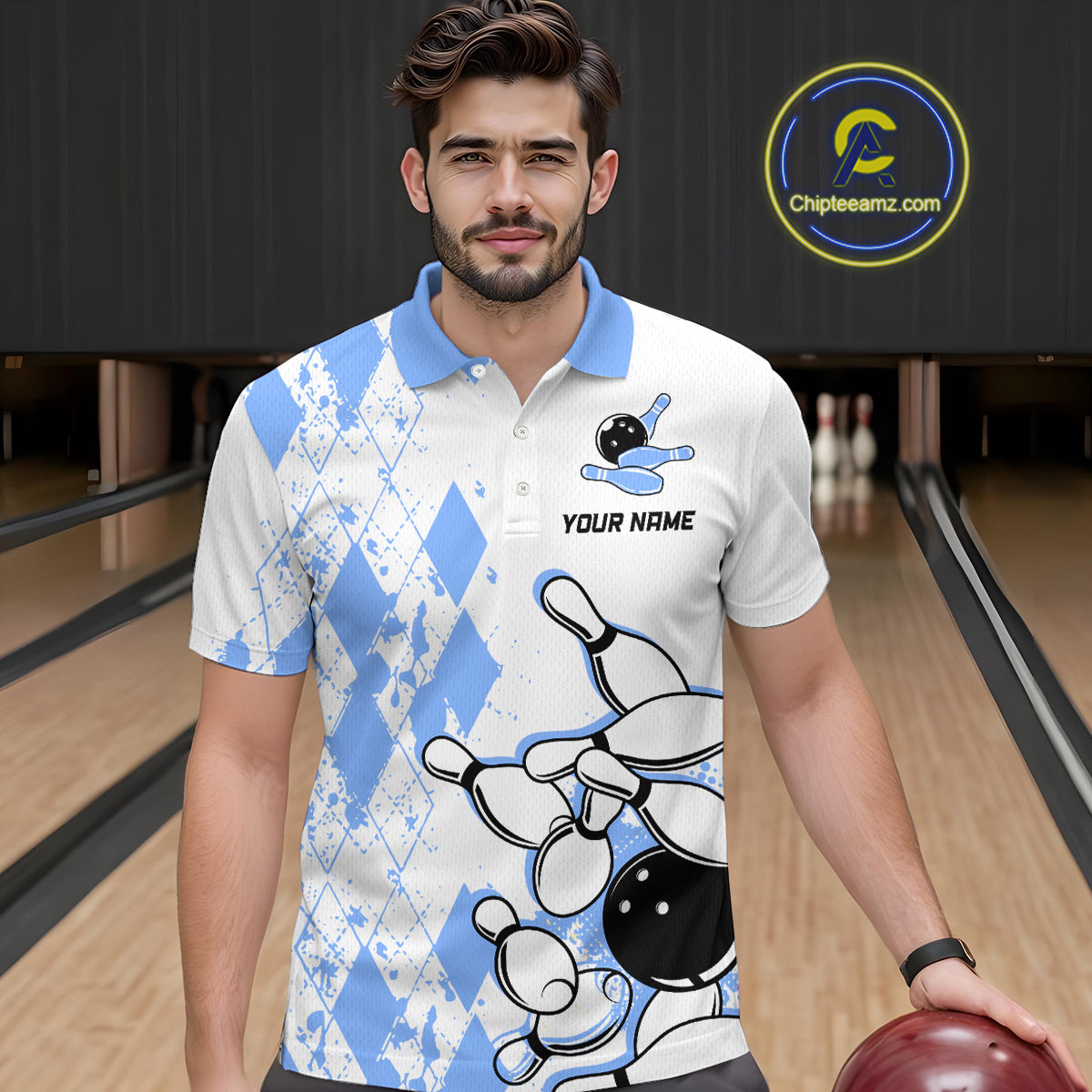 Blue Vintage Bowling Custom Men Bowling Shirt Polo & Quarter-Zip Bowling Team Jerseys HNT68