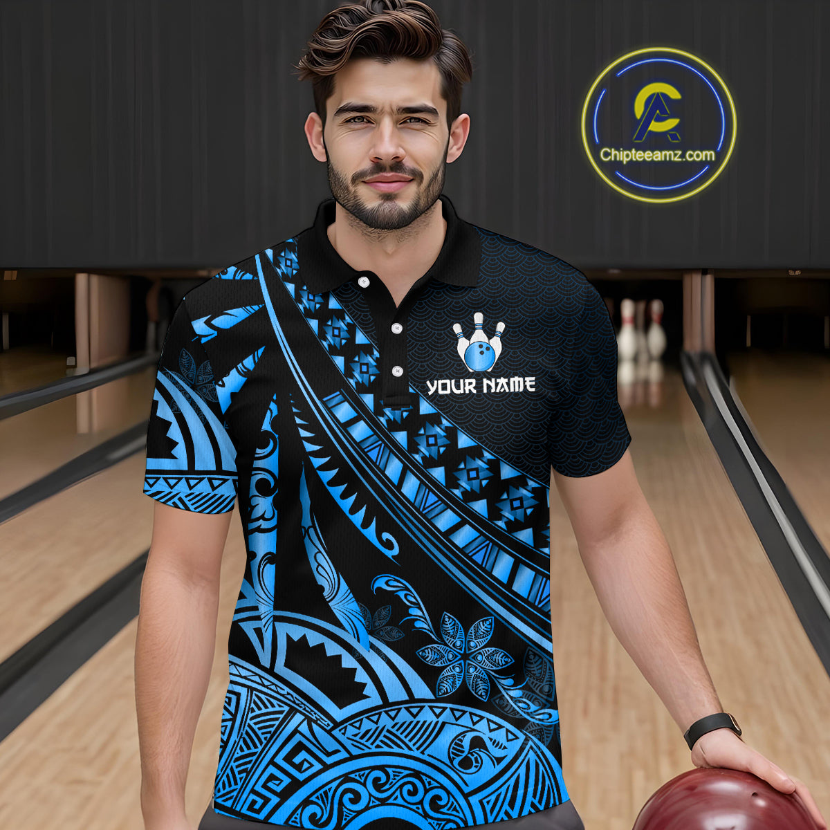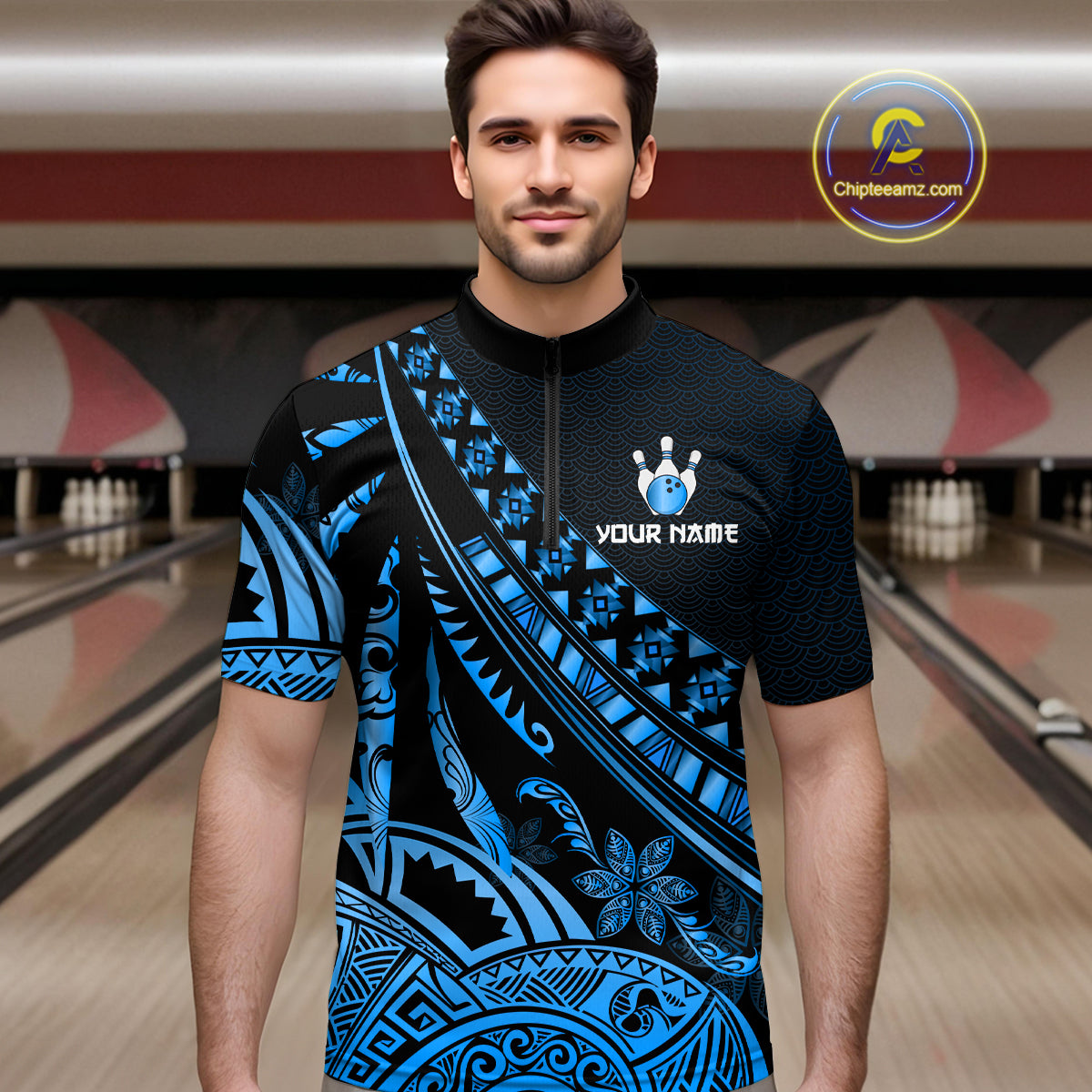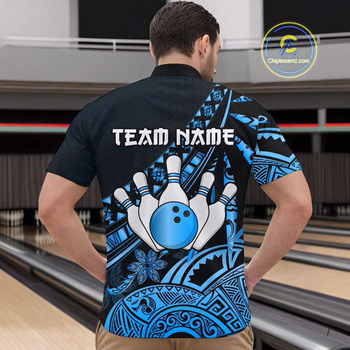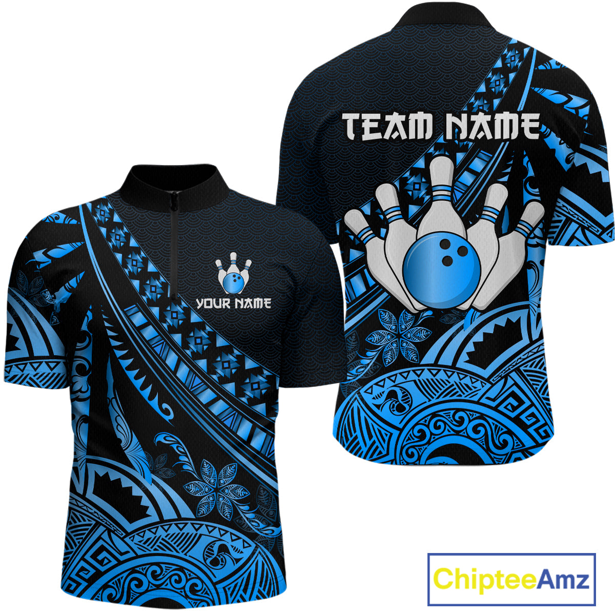 Blue Vintage Bowling Custom Men Bowling Shirt Polo & Quarter-Zip Bowling Team Jerseys HNT69