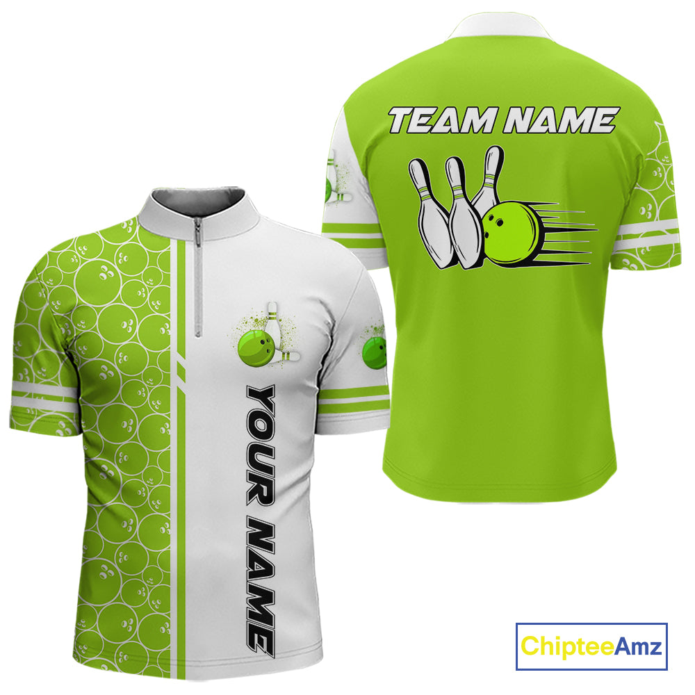 Men Bowling Polo, 1/4 Zip Shirt Custom white & green camo vintage bowling shirts, mens bowling jersey NQS10457
