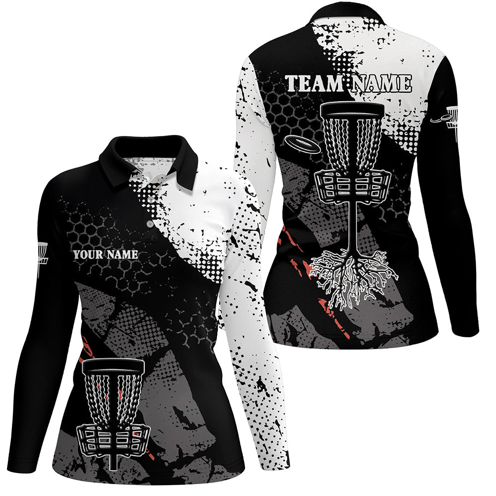 Black and white Womens golf polo shirts custom team vintage disc golf basket womens golf tops NQS6316