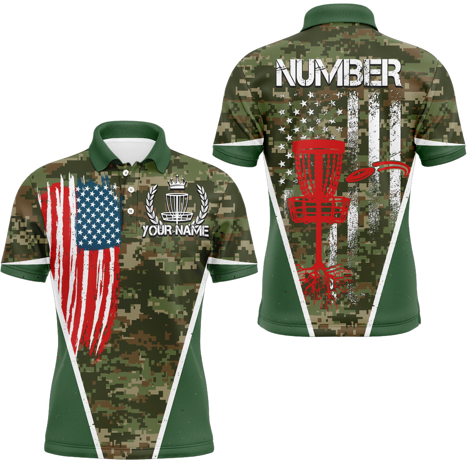 Green Camouflage Vintage Usa Flag Mens Disc Golf Polo Shirt Patriotic Disc Golf Shirts For Men LDT0518