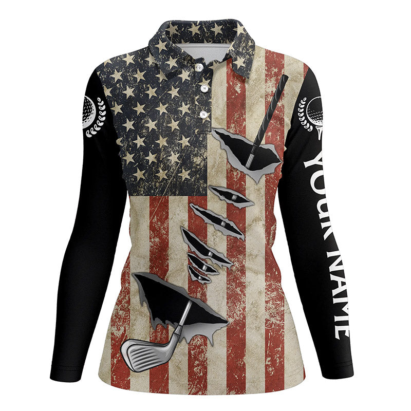 Vintage American flag golf clubs Womens golf polo shirts custom name patriotic golf gifts for ladies NQS5687