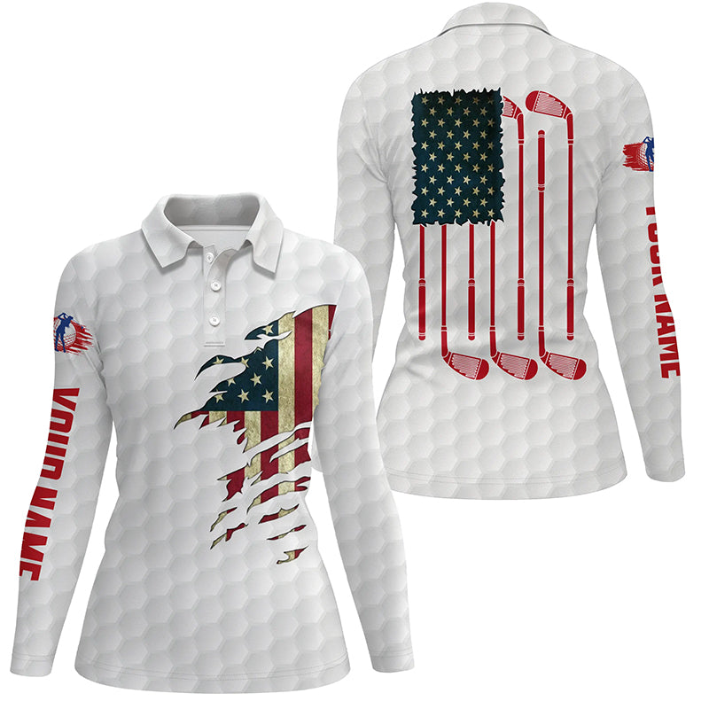 Womens golf polo shirts American flag patriot custom name vintage flag golf clubs golf shirt women NQS7806