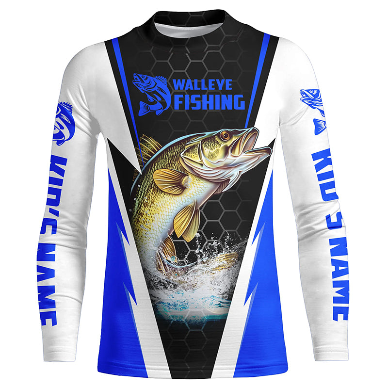 Custom Walleye Fishing Jerseys, Walleye Long Sleeve Tournament Fishing Shirts | Blue IPHW5716