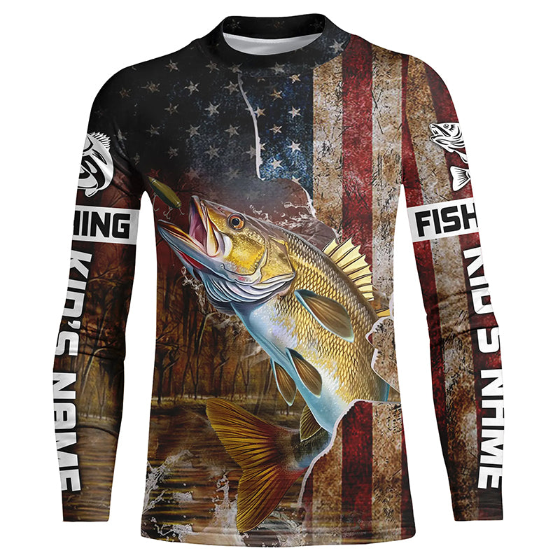 Personalized American Flag Walleye Fishing Shirts,Vintage Patriotic Walleye Fishing Apparel IPHW5734