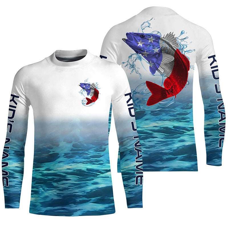 American Flag Walleye Long Sleeve Fishing Shirts, Custom Patriotic Walleye Tournament Fishing Shirts IPHW5735